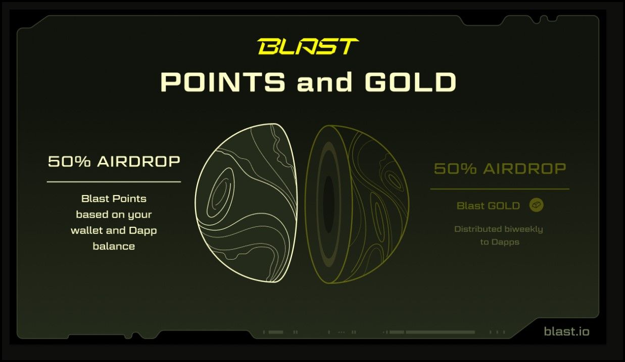 Blast Points: Blast Points are a core component of the incentive strategy, encouraging users to inject liquidity into the network. Users earn Blast Points automatically for holding ETH, WETH, or USDB in their wallets, with point accrual occurring at each block. This system incentivizes users to maintain and increase their liquidity on the Blast network, driving up the TVL and overall activity within the ecosystem.