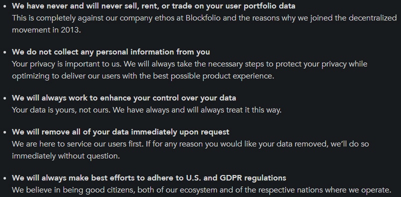 Extract from Blockfolio Privacy Policy on data storage / deletionOf course, Blockfolio offers the application to consumers for free and they need to generate revenue in some way if the app and the business is to remain sustainable. The privacy statement has helped soothe many users, but there are still some privacy concerns from a small subset of the cryptocurrency community.