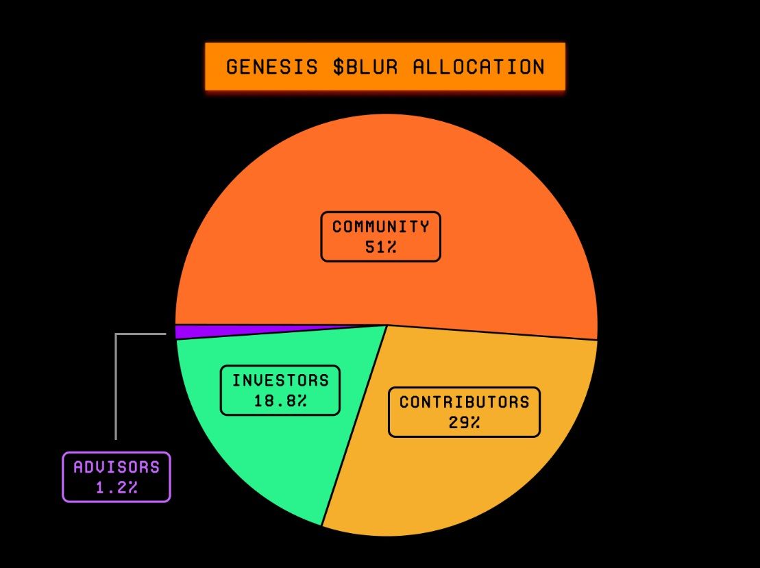 - 51% allotted to Blur community members, totalling 1,530,000,000 BLUR.