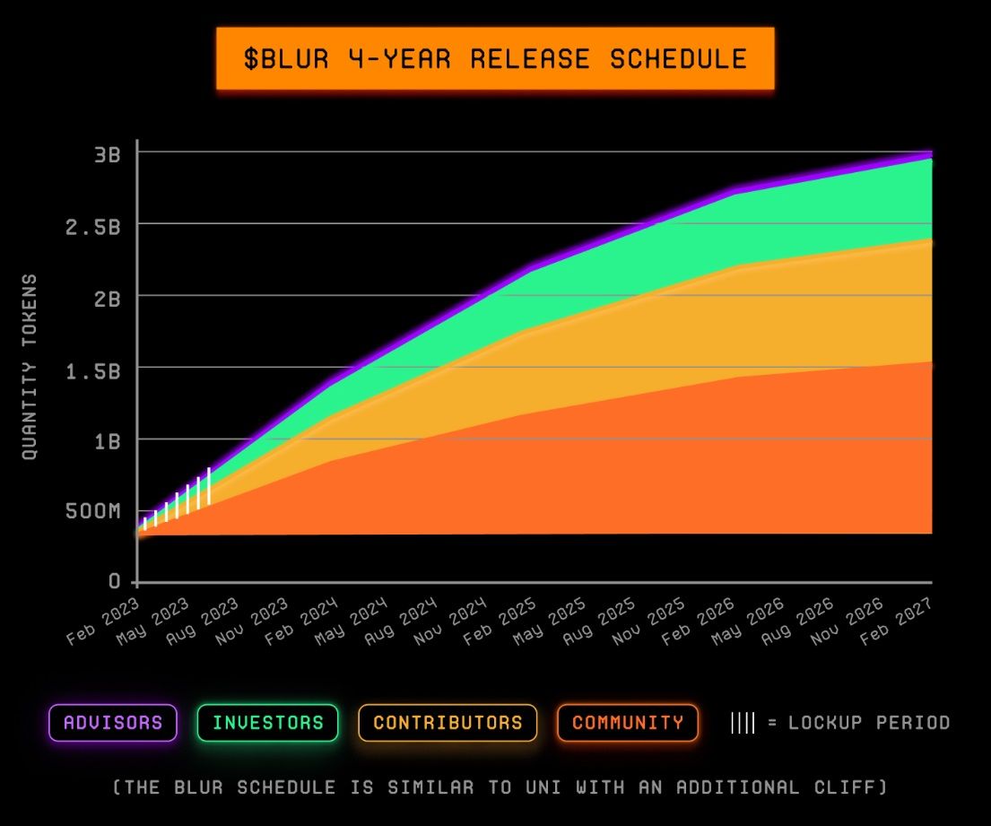 The Four-Year Release Schedule of BLUR Tokens. Image via BlurWhere to Buy BLUR Token