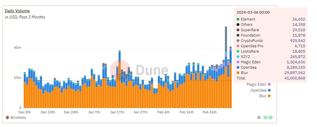 The platform has quickly gained traction, outpacing competitors. Currently, Blur's NFT trading volume more than triples that of OpenSea. Blur also commands an over 66% market share of the NFT marketplace