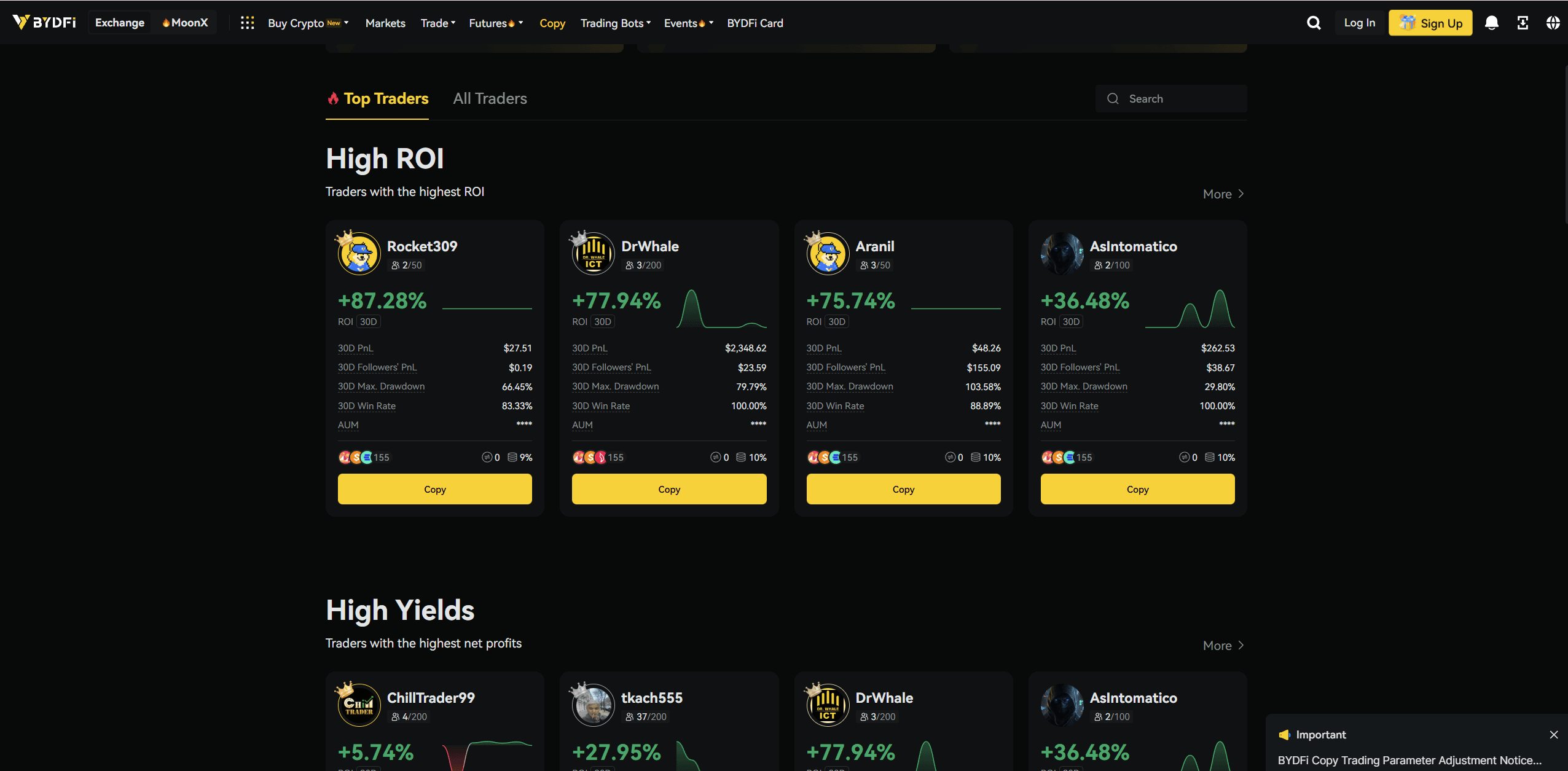 - Potential for Irregular Activity: Social platforms carry inherent risk. While BYDFi employs strict checks and active monitoring, a small risk remains that some traders manipulate their statistics, engage in rapid asset buying and selling schemes, or present misleading records.