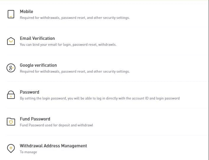 The exchange uses a cold–warm–hot wallet structure, with most customer funds in offline cold storage and only operating liquidity in hot wallets. Withdrawals require multi-sig approvals, and users can set address whitelists, device binding, 2FA, and anti-phishing codes.