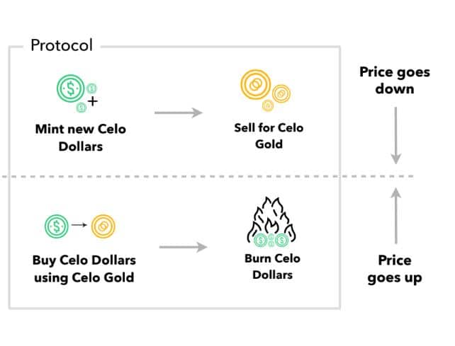 Market forces of supply and demand are sued to maintain stability in the cUSD token. Image via Celo.org The protocol that provides the cUSD with stability is a hybrid seigniorage and crypto-collateral model. That means the collateral backing the cUSD is a mix of CELO and other cryptocurrencies. These are used to adjust the supply of cUSD and maintain the peg.