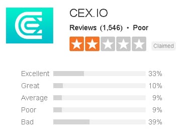 The many complaints against Cex.io give the company a score of 3.9 out of 10 with over 1,543 reviews