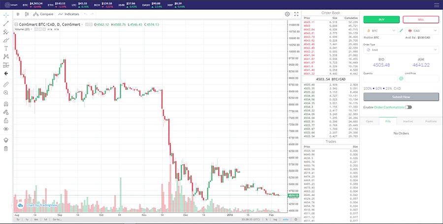 Coinsmart's advanced trading platformIn terms of the charting, Coinsmart uses tradingview technology. This is a well-known charting package that has been used by a number of other exchanges as well. It is also a favourite for those traders who employ a great deal of technical analysis in their trading.