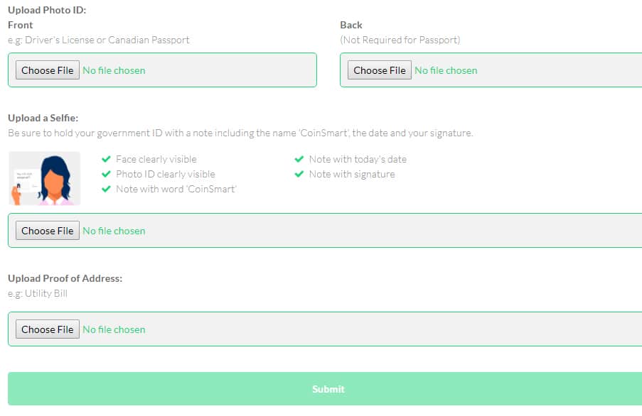 Given that Coinsmart is a MSB that is regulated by FINTRAC, they are required to complete compulsory KYC on their users. This means that they need to confirm your identity and address in order to let you start trading.
