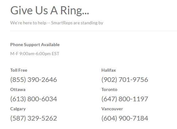 They also have a range of customer support numbers that you can call for the different regions in Canada. This includes a handy toll-free number. Take note though that they are only available at 9:00am to 6pm EST during the week.