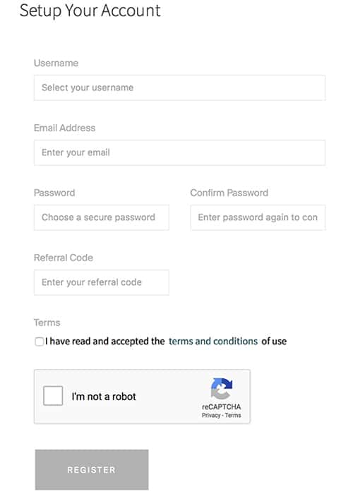 If you wanted to start buying coins on Coinsquare then you would need to register an account. You can click the "getting started" button on the homepage and this will take you to the main registration page. This is pretty straightforward and is presented below.