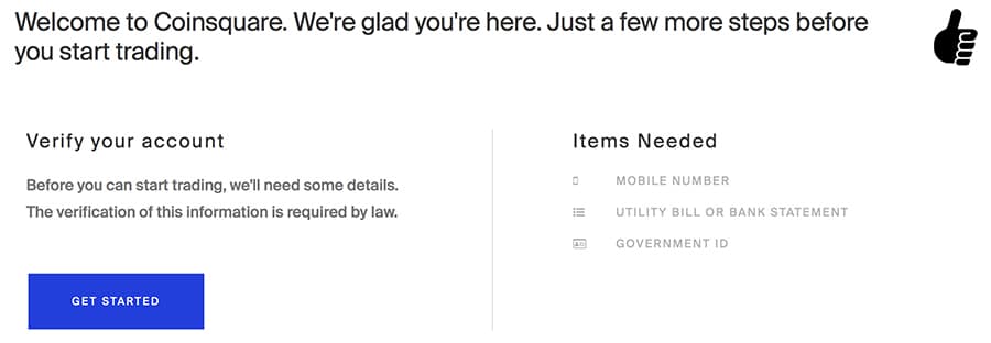 Verification Requirements at CoinsquareYou will need to confirm your telephone number with a valid mobile number. They will then ask you to upload your identity document as well as your proof of address on the platform.