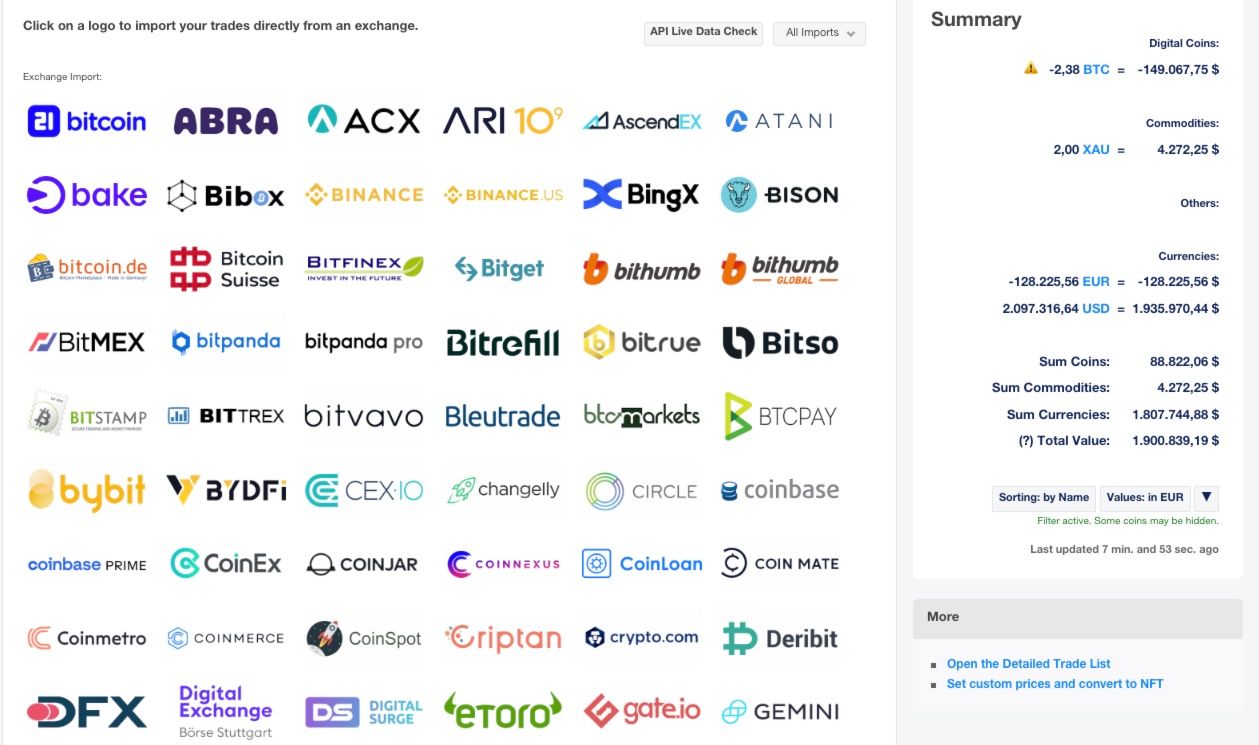 - Importing all of your transactions from exchanges, wallets and blockchains