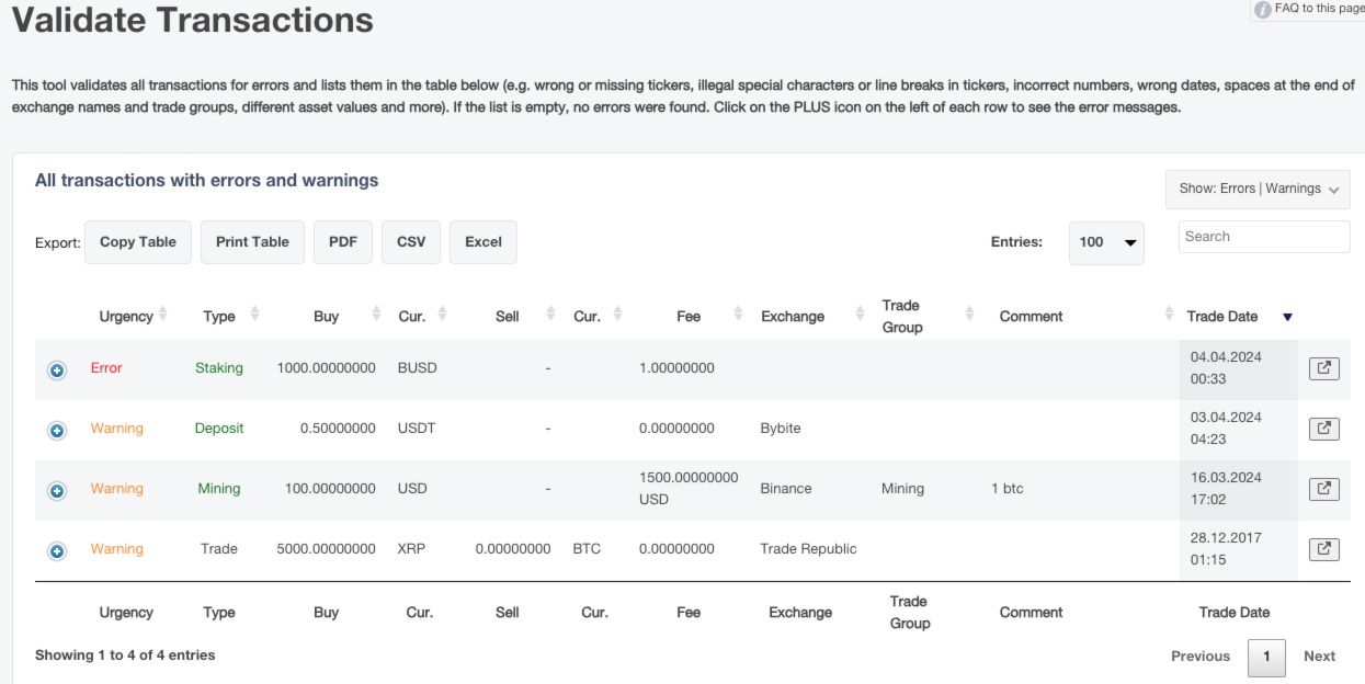 Once all your data is imported into CoinTracking either by yourself or a CoinTracking rep, you will likely find transaction discrepancies and errors. If you keep on top of your crypto transactions and use a tax software from the start and check in on it regularly, you will likely be able to remember the transactions and rectify them yourself.