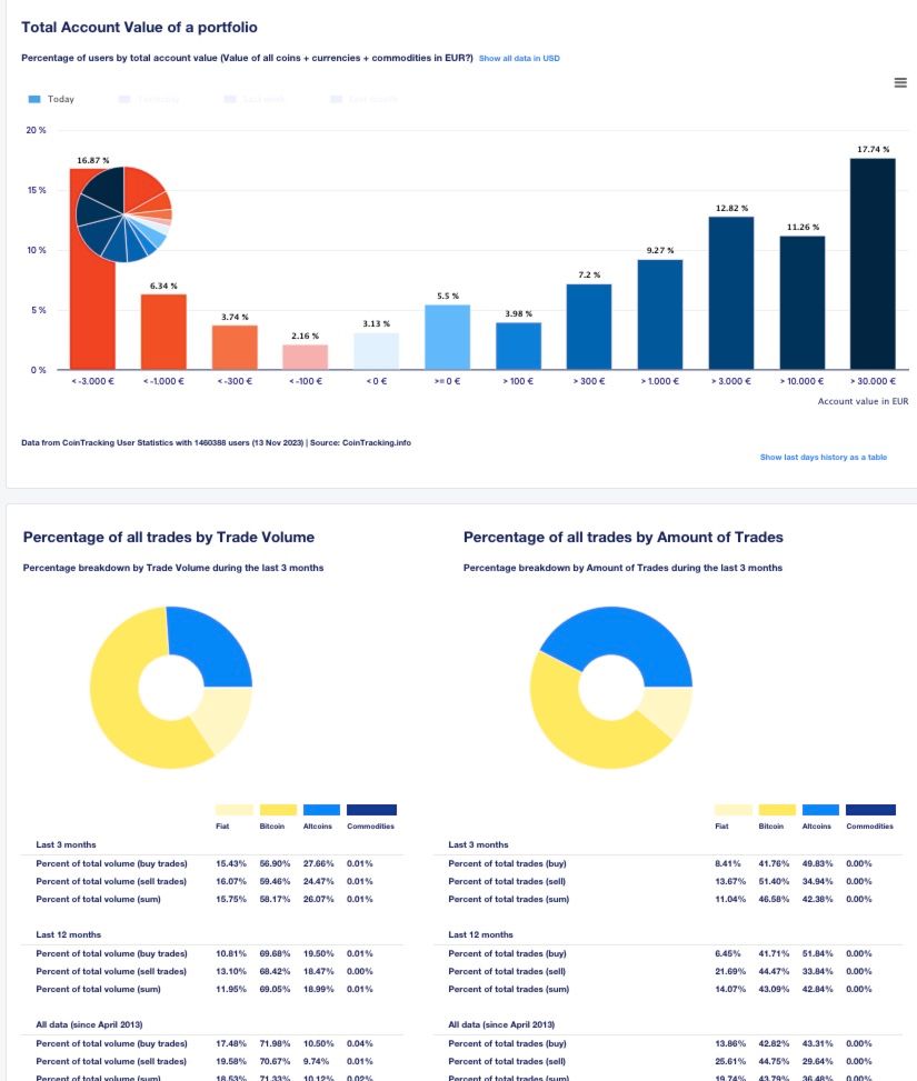 - User Statistics- Average portfolio and trading statistics based on the aggregated data of all CoinTracking users.