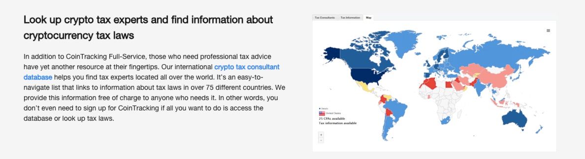 If you don’t have a crypto-savvy accountant or don’t feel like doing your own taxes, another thing we like about CoinTracking is that if this all makes about as much sense as Egyptian hieroglyphs, CoinTracking has also partnered with hundreds of tax consultants who are familiar with CoinTracking that users can reach out to. They even offer full-service packages, which we will cover later on.