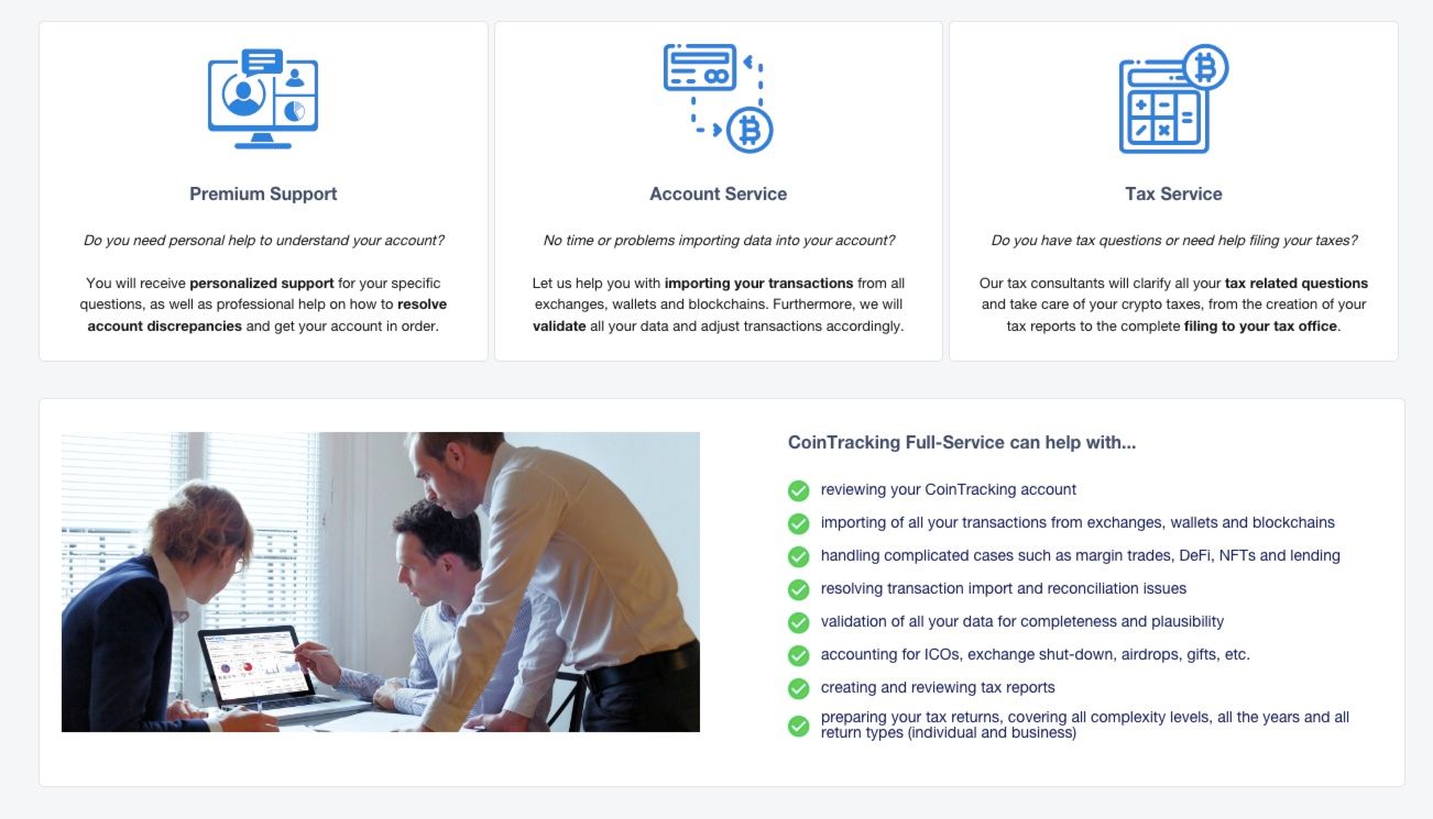 CoinTracking has in-house qualified tax consultants and experts who are there to ensure users remain compliant and accurate with all matters of crypto tax reporting. Utilizing the full-service package also ensures that users have access to premium support 24/7 and direct access to tax professionals who are able to handle all of their tax-related queries.