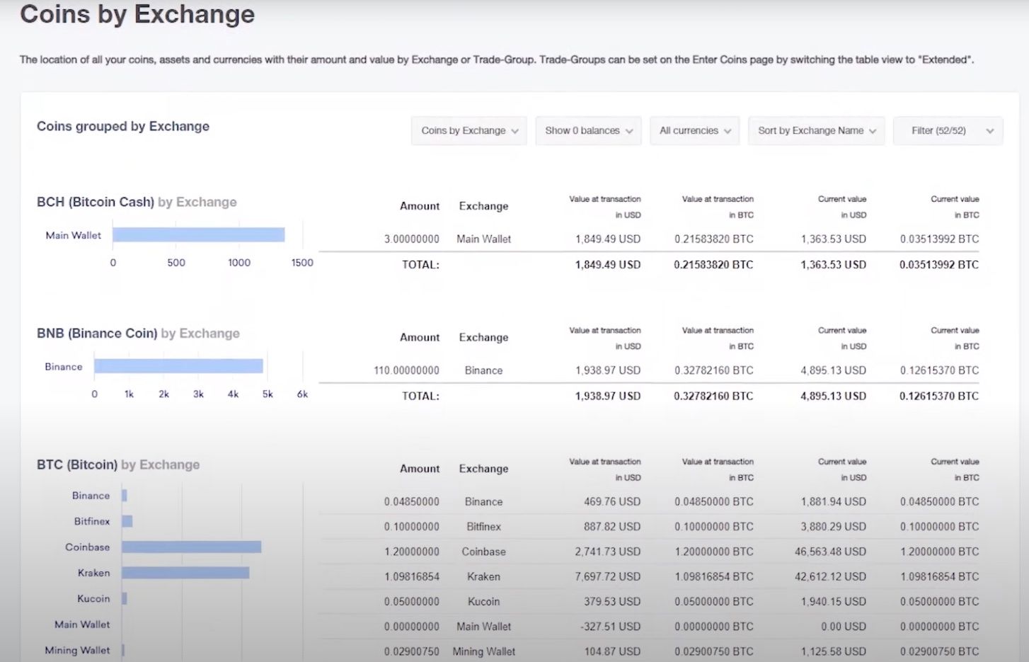 CoinTracking presents users with dozens of interactive charts and graphs that help visualize trade history, portfolio composition, and performance over time. These visualizations aid in identifying trends, patterns, and opportunities for improved decision-making, as well as organizing taxable information.