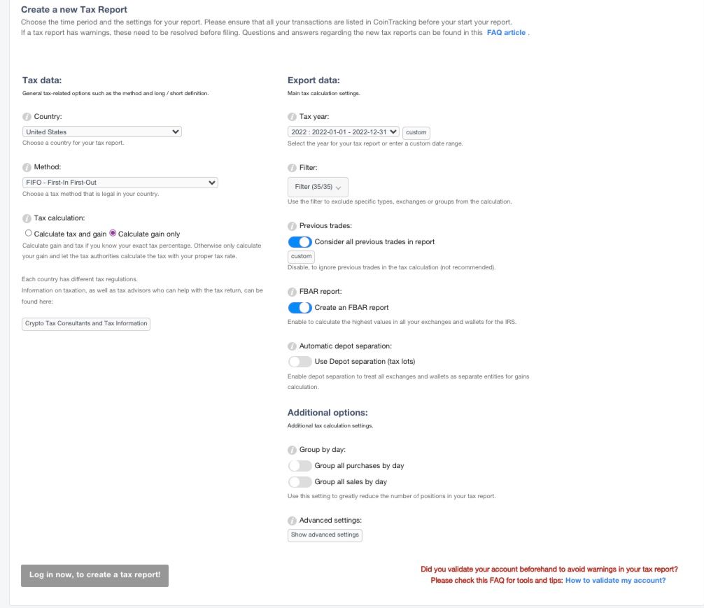 A Look at Creating a Tax ReportWith these tax reports, users can either use them to file their own tax returns or give these reports to their accountants or tax professionals who do taxes on their behalf. CoinTracking also has direct integrations with TurboTax, TaxACT, Drake, and Wiso Steuer, making tax preparation reporting even easier.