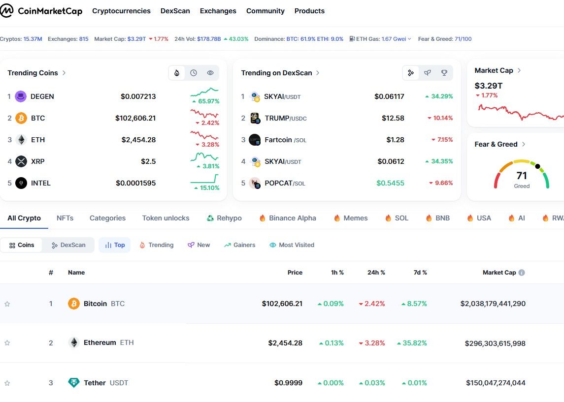 When you just want the numbers, like prices, charts, and rankings, without diving into deep analytics, market data aggregators are your go-to. These platforms offer a bird’s-eye view of the crypto market, helping you track token prices, compare projects, and spot trends in real time.