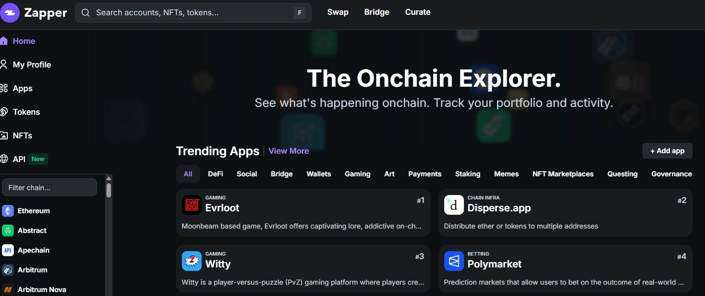 Zapper Is A Powerful Crypto App With Enterprise-Grade On-Chain Data. Image via ZapperFeatures