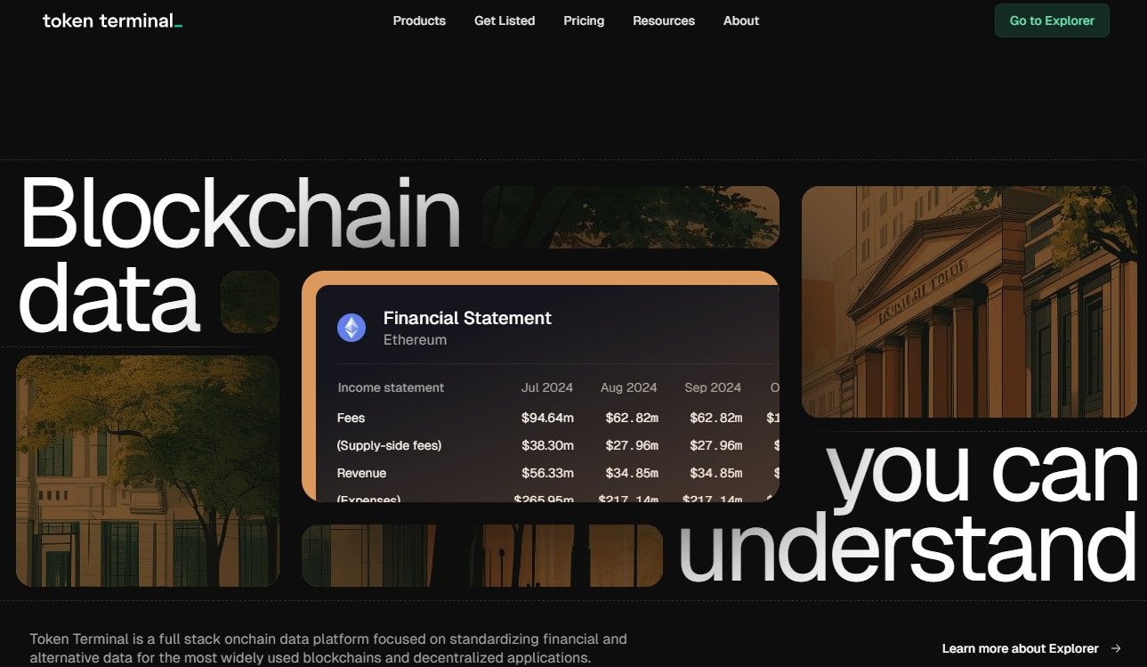 - Entity-Level Analytics: From DApps and protocols to DAOs and chains, Token Terminal lets you drill into specific entities and compare their financial performance side by side.