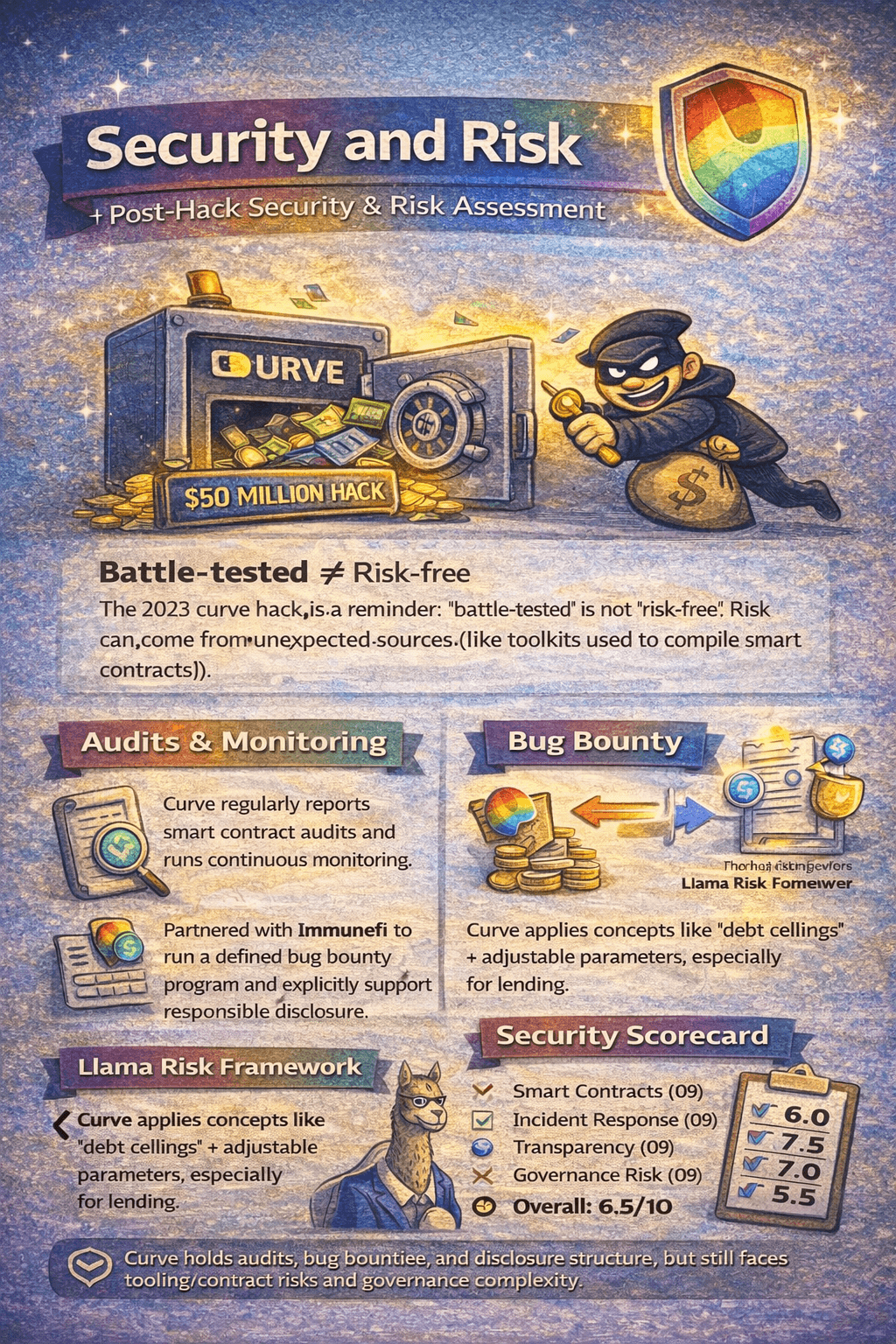 Our post-hack score: 6.5/10. Curve earns points for maturity and transparency, but loses points for the reality that complex DeFi systems can fail in unexpected ways.