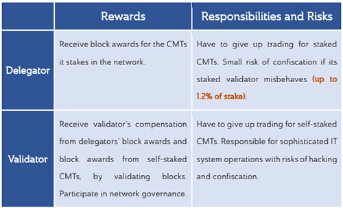 CMT is the main token used in the network. Like Bitcoin and Ethereum, the token is paid to those who support the network by validating transactions. In order to earn CMTs, network participants need to: