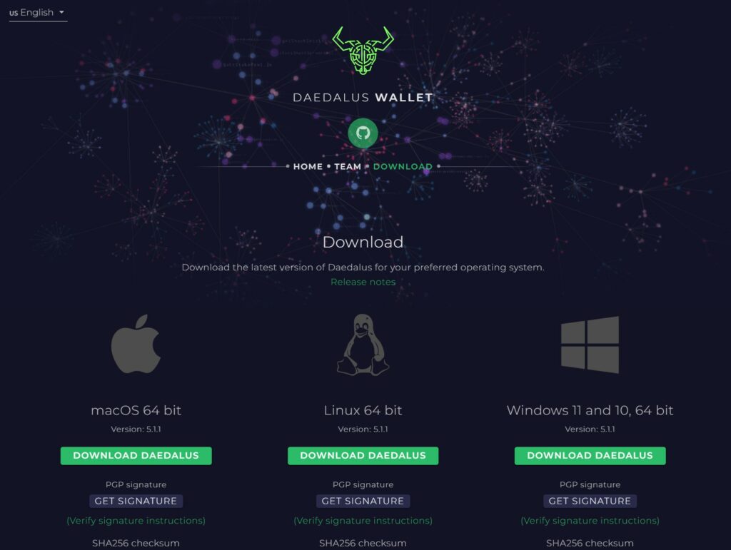 To download the desktop version for any operating system, visit daedaluswallet.io/downloads, which will take you to this screen: