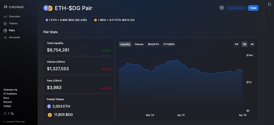 Farm $DG at Uniswap. Image via Uniswap. 3. Go to the $DG Liquidity Farming Dashboard and connect your wallet.