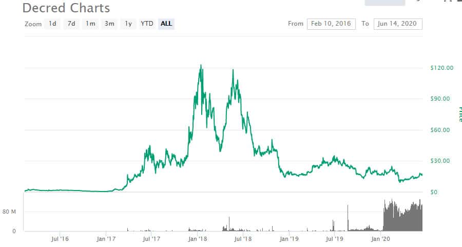 DCR Price Performance. Image SourceWhat is incredible is that DCR experienced a second rally in mid-2018 which almost pushed its price above its previous all-time high. This was at a time where many other cryptocurrencies were losing value.