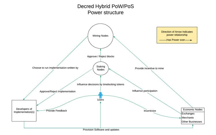Decred uses a hybrid of proof of work and proof of stake to achieve census on its blockchain. As you may already know, in proof of work, transactions are packaged into blocks which are then “solved” by miners using computing power, with correct blocks being added to the blockchain. In proof of stake, users stake a certain amount of cryptocurrency for a chance of producing a block.