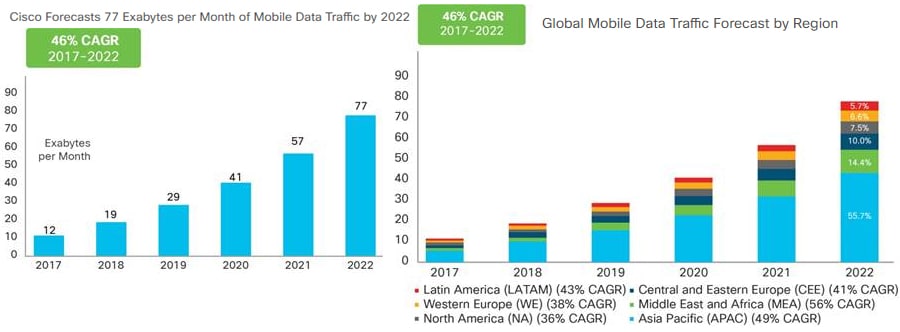 Global Data growth forecasts. Image via CiscoBy making the mobile data market more transparent and connected, DENT will unlock the value in wasted and unused mobile data by allowing consumers to buy, sell and trade their mobile data in a global marketplace.
