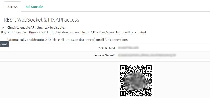 In order to get your API key, you will head on over to your account and hit the API tab. You will then have to request your API key. Make sure that once you have your API key you also save your access key in a safe place. This is because it is your only way of recovering your API key in the case of loss.