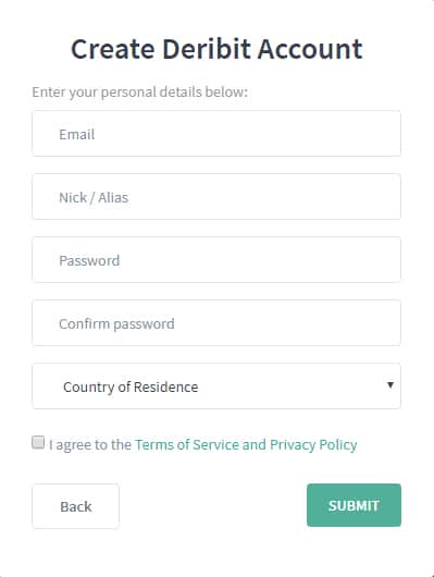 Assuming that you wanted to sign up and give Deribit a try then you need to create an account. You can head on over to their sign-up section and register your details.