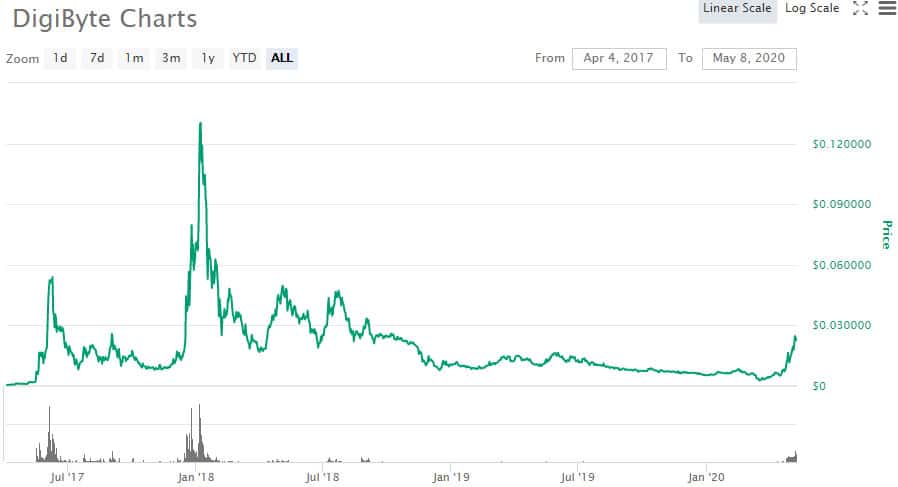 Looking at the way the DGB token is rallying as of May 2020 it’s possible that Digibyte is finally ready for some acceptance and appreciation outside its own community. The market cap for the coin has almost reached $250 million, and continues rising strongly.