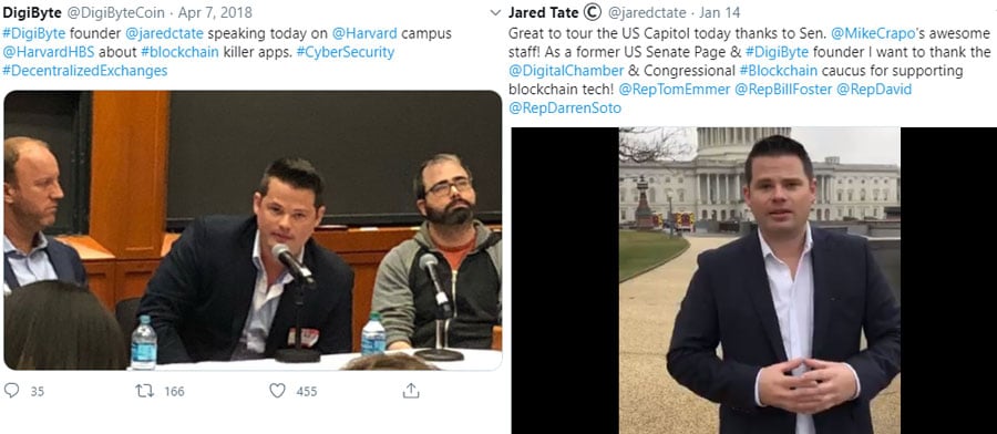 Jared Tate at Harvard & Congress. Image via Digibyte TwitterOne of the defining characteristics of the Digibyte team is their integrity and trustworthy nature. Because they are all unpaid volunteers there is no greed or financial gain considered and all the team have only the best intentions to create the very best blockchain.