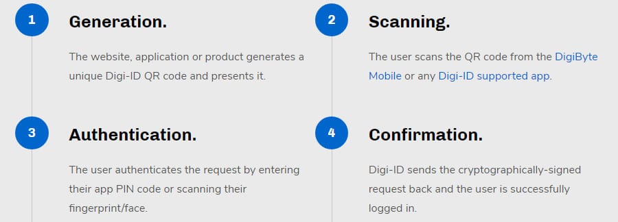 The Digi-ID is an authentication method developed for the Digibyte blockchain that features security and speed in a method that replaces the need for passwords to sing into applications.