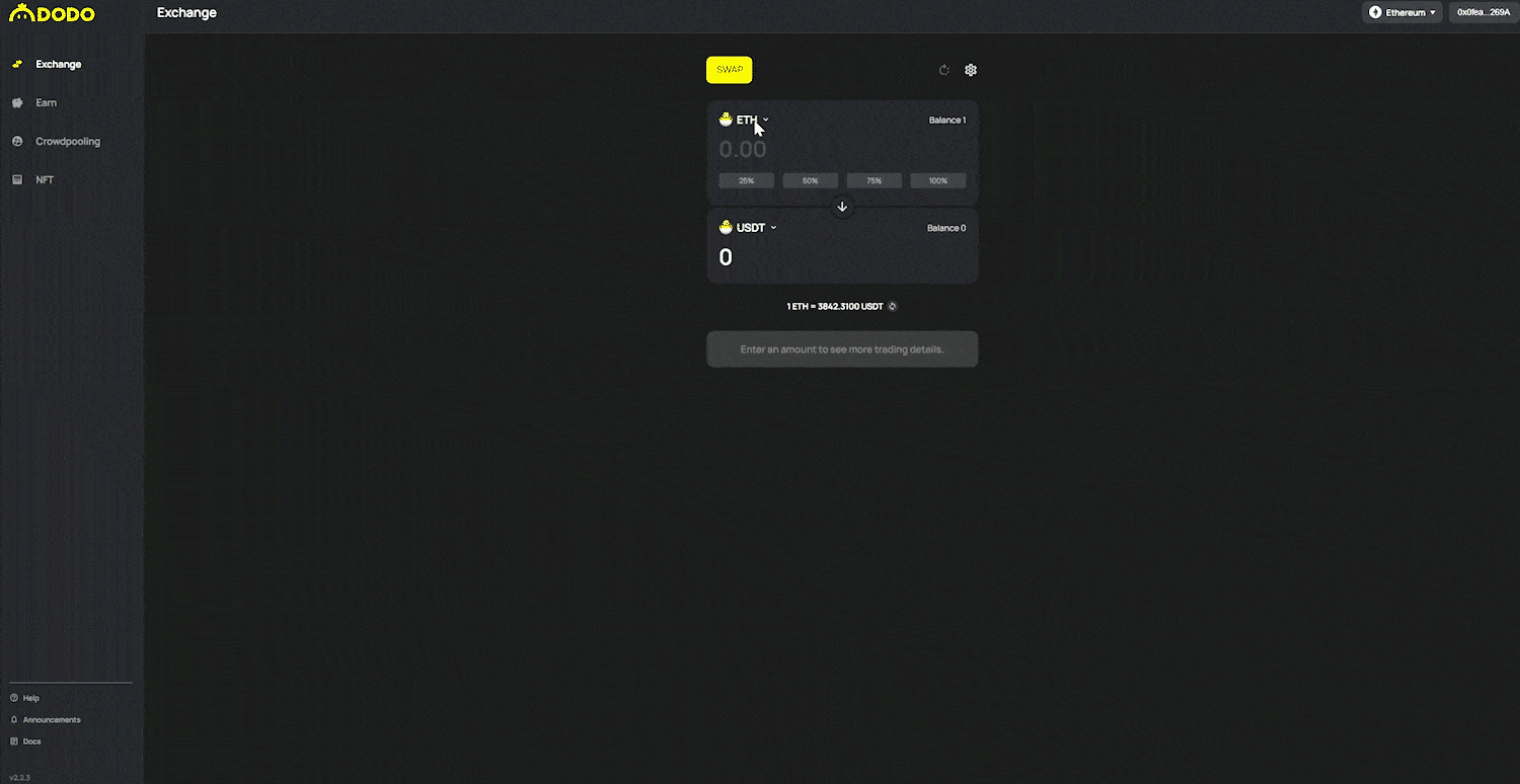 - Go to the DODO Exchange app at https://app.dodoex.io/. Make sure your wallet is on the Ethereum mainnet