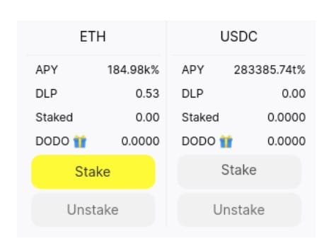 Image via DODO4. You will see the info relevant to DODO staking, such as APY, unstaked and staked amount, and reward allocations.