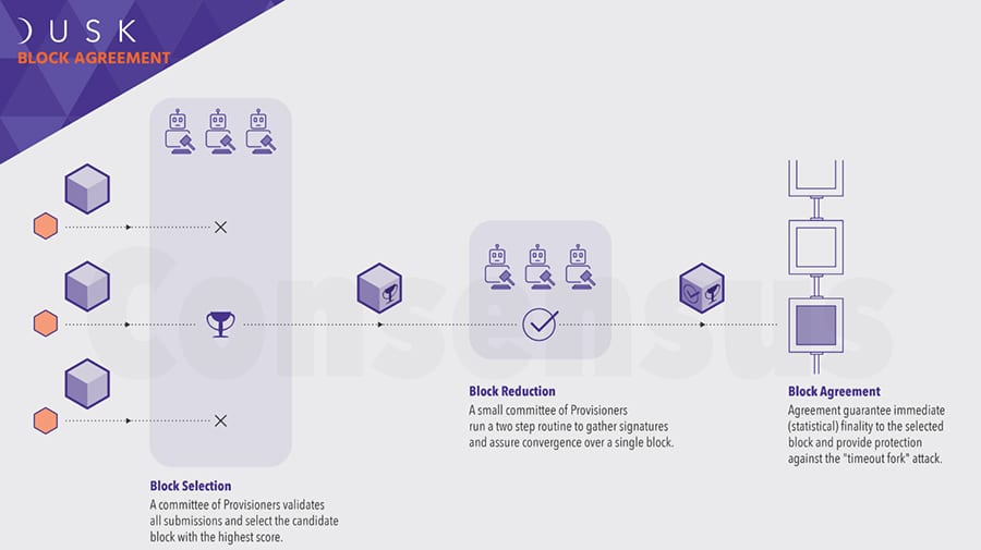 Overview of the Dusk Network ConsensusIt also includes the unique Proof of Stake consensus known as Proof of Blind Bid, which allows block generators to stake tokens anonymously. SBA compliments many of the ideas first introduced by the Byzantine Agreement consensus including the concept of stealth time-locked transactions to protect from Sybil attacks.
