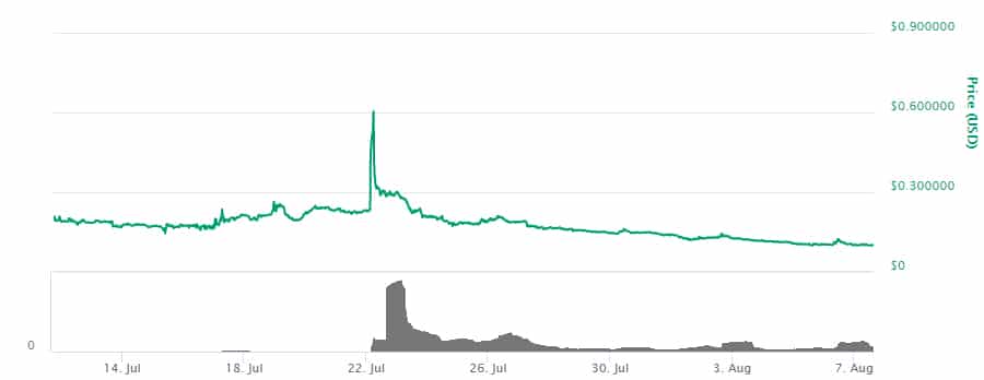 Tokens were sold for $0.05760 during the ICO period, and as of August 7, 2019, are selling at $0.101 which is significantly lower than prices hit during July 2019.