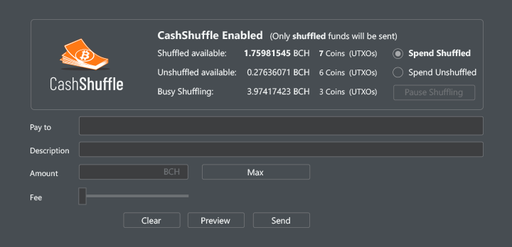 CashShuffle Settings in Electron CashThis is similar to the transaction "Mixins" that are completed in the Monero (XMR) protocol. By shuffling these transactions, it will make it harder for any company or individual to trace where the original transaction came from.