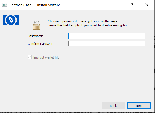 Choosing a passwordYou do have the option to leave the wallet unencrypted but I would highly recommend against this. If a hacker is able to get access to an unencrypted keys then they can easily send funds out of your Electron Cash wallet.