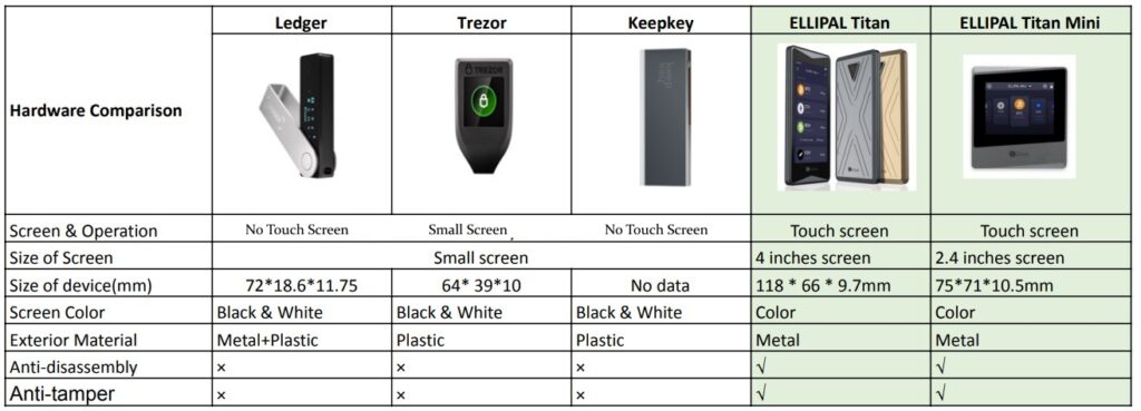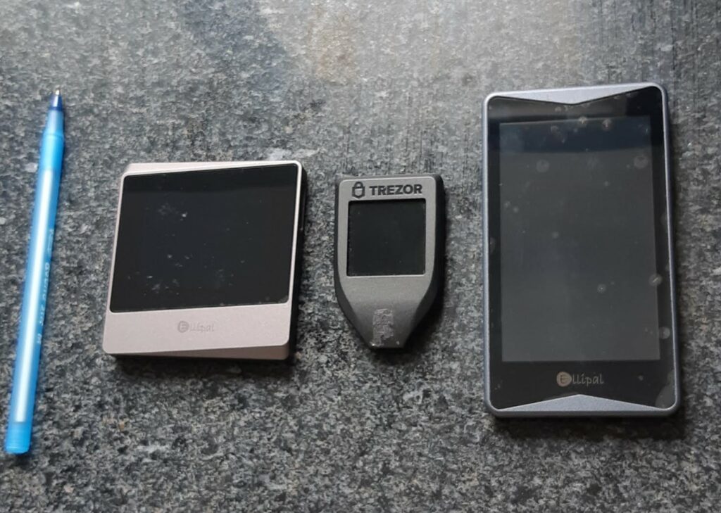 A Look at the Titan vs Titan Mini vs Trezor, with a pen for context.ELLIPAL’s approach to mobile-oriented hardware wallets supports our increasingly mobile lifestyles, providing a nice blend between the convenience and portability of a software wallet, with the robust security that only hardware wallets can provide.