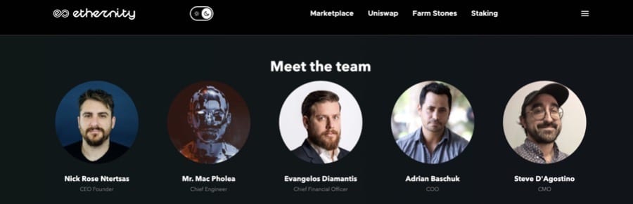 Ethernity Chain's All-Star Team - Image via Ethernity.io - Nick Rose Ntertsas - CEO Founder