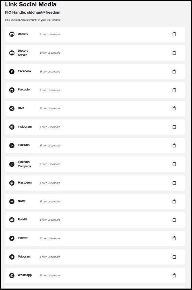 - Brand Consistency: Public figures can maintain a consistent and professional image using custom FIO Domains (e.g., influencername@instagram), making it easy for fans to verify their identity and send support.
