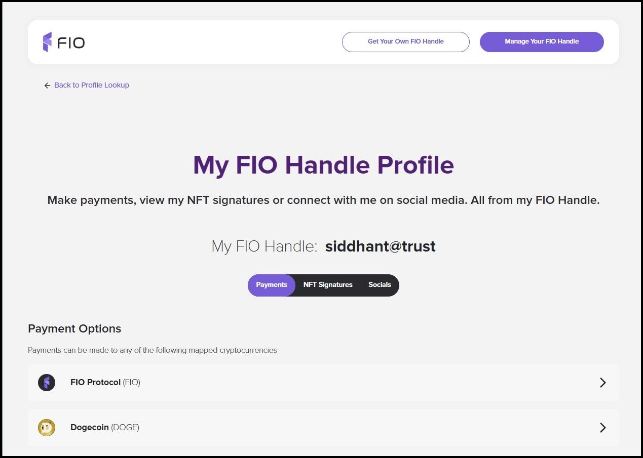 - Complete Registration: Once the payment is processed, your FIO Handle is registered and ready to use.