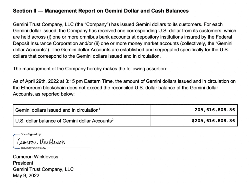 What also makes GUSD a solidly-backed asset is that each dollar backing GUSD is held in FDIC-insured banks, i.e. the US government will give you your money if there is a bank run). The website lists the audits done each time, with a sample below of the latest audit: