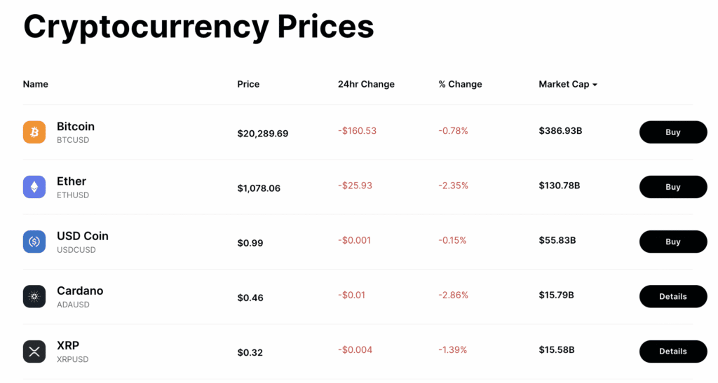 Clean and easy-to-understand interface The homepage has all the relevant information needed, including resources and top movers in the market, in addition to your account information. This is a nice way to get your hands wet for those new to buying and selling crypto. You can also set an alert that will give you a push notification when it hits your price.