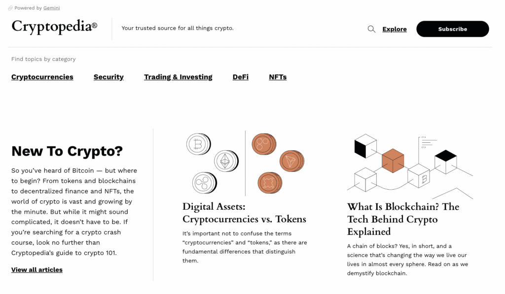- Easy-to-read support articles - this is helpful for those new to crypto and is a good source of information for them to start their DYOR journey. They even have an education section called Cryptopedia that provides basic general information about blockchain and crypto. Many of the contributors are from the blockchain projects themselves, making for trusted reading.