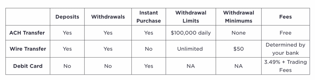 There are a myriad of ways to fund your Gemini account. If you are new to crypto and want to get started buying crypto, here are your choices for making fiat currency deposits: